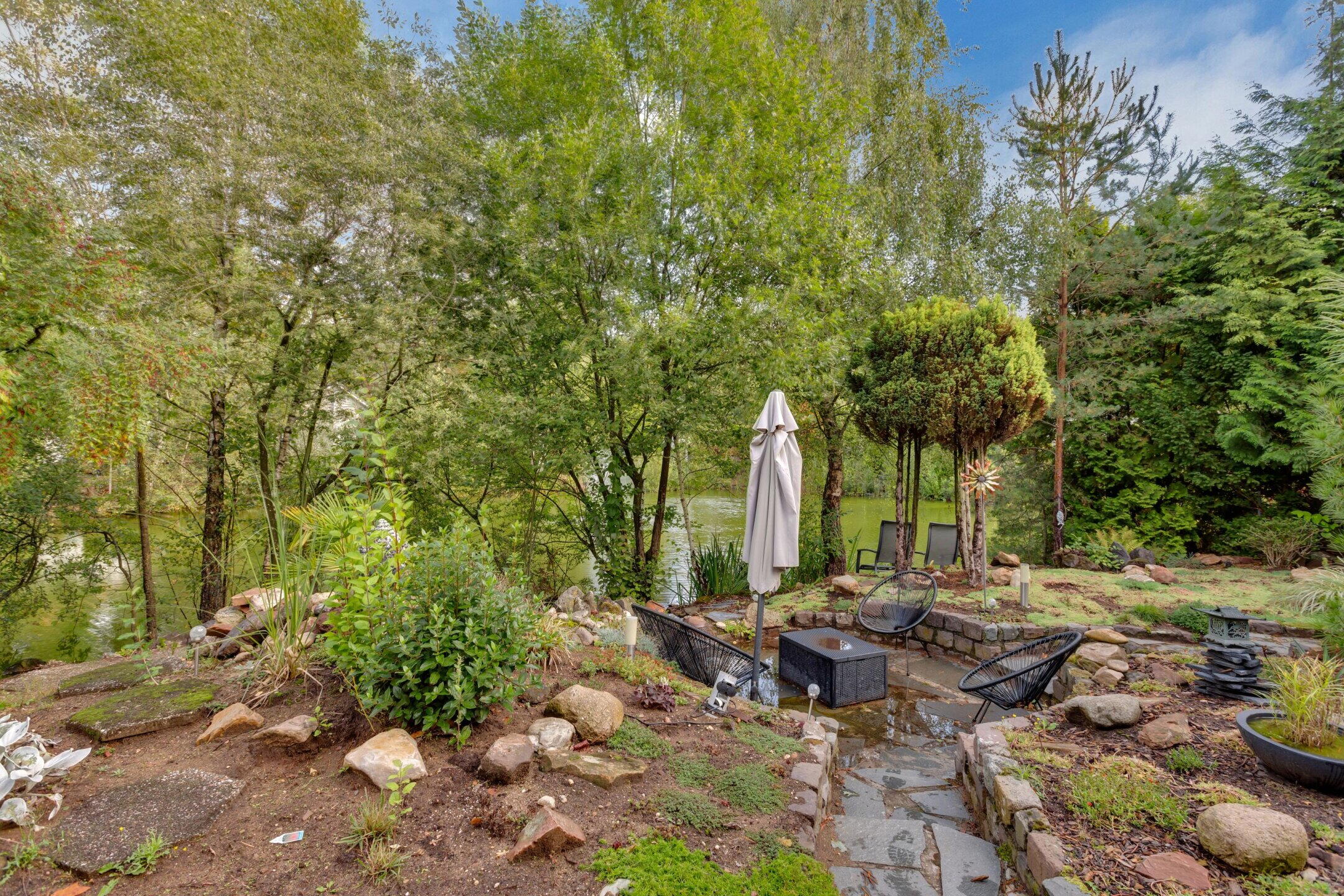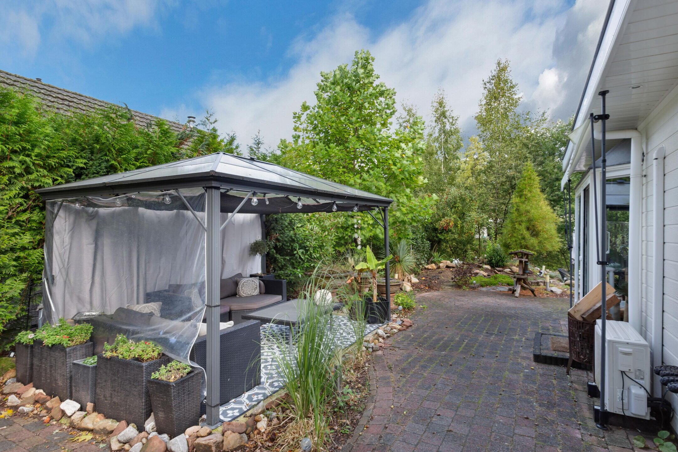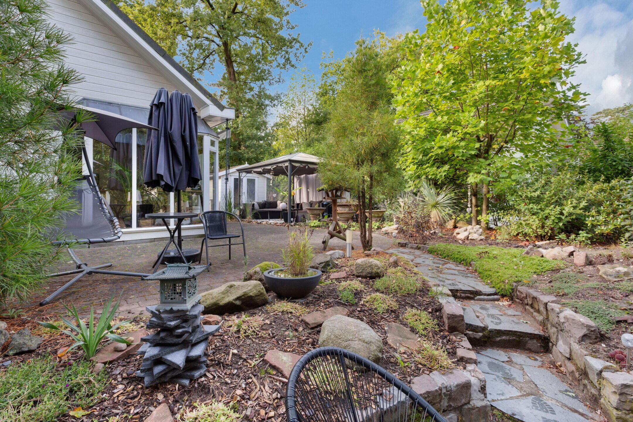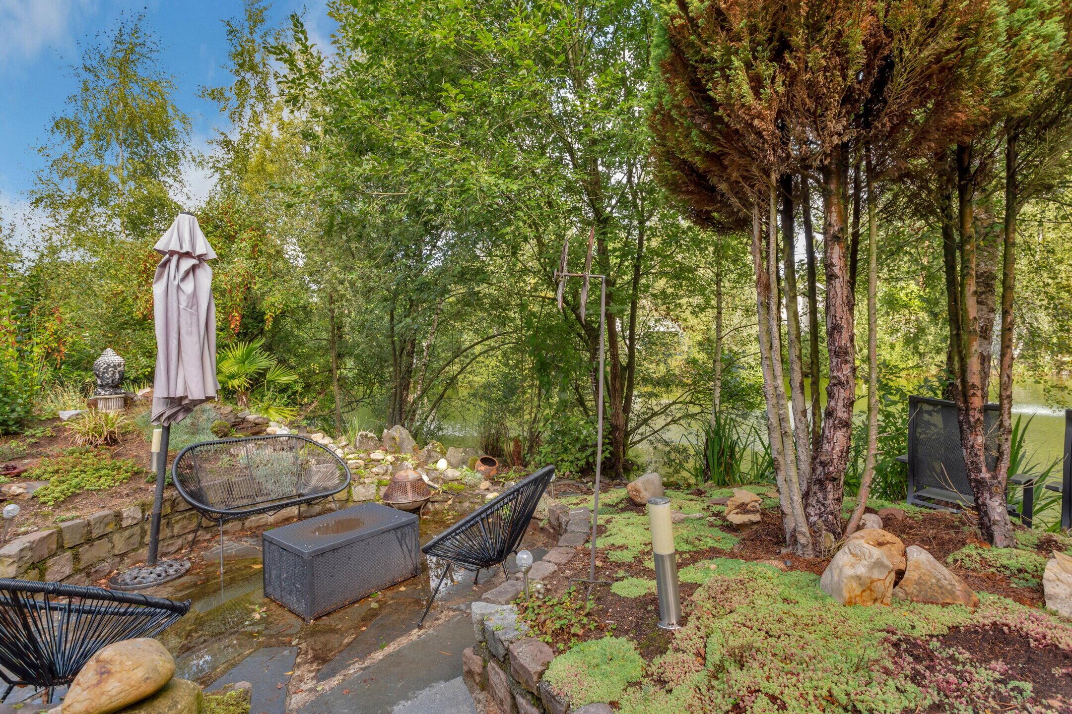 Rondom de woning ligt een fraai aangelegde tuin met meerdere terrassen en zitjes. Of je nu wilt genieten van de zon of liever de schaduw opzoekt, er is altijd een fijne plek te vinden – met voortdurend uitzicht op het water voor dat ultieme vakantiegevoel. Parkeren kan op eigen terrein, met ruimte voor twee auto’s.