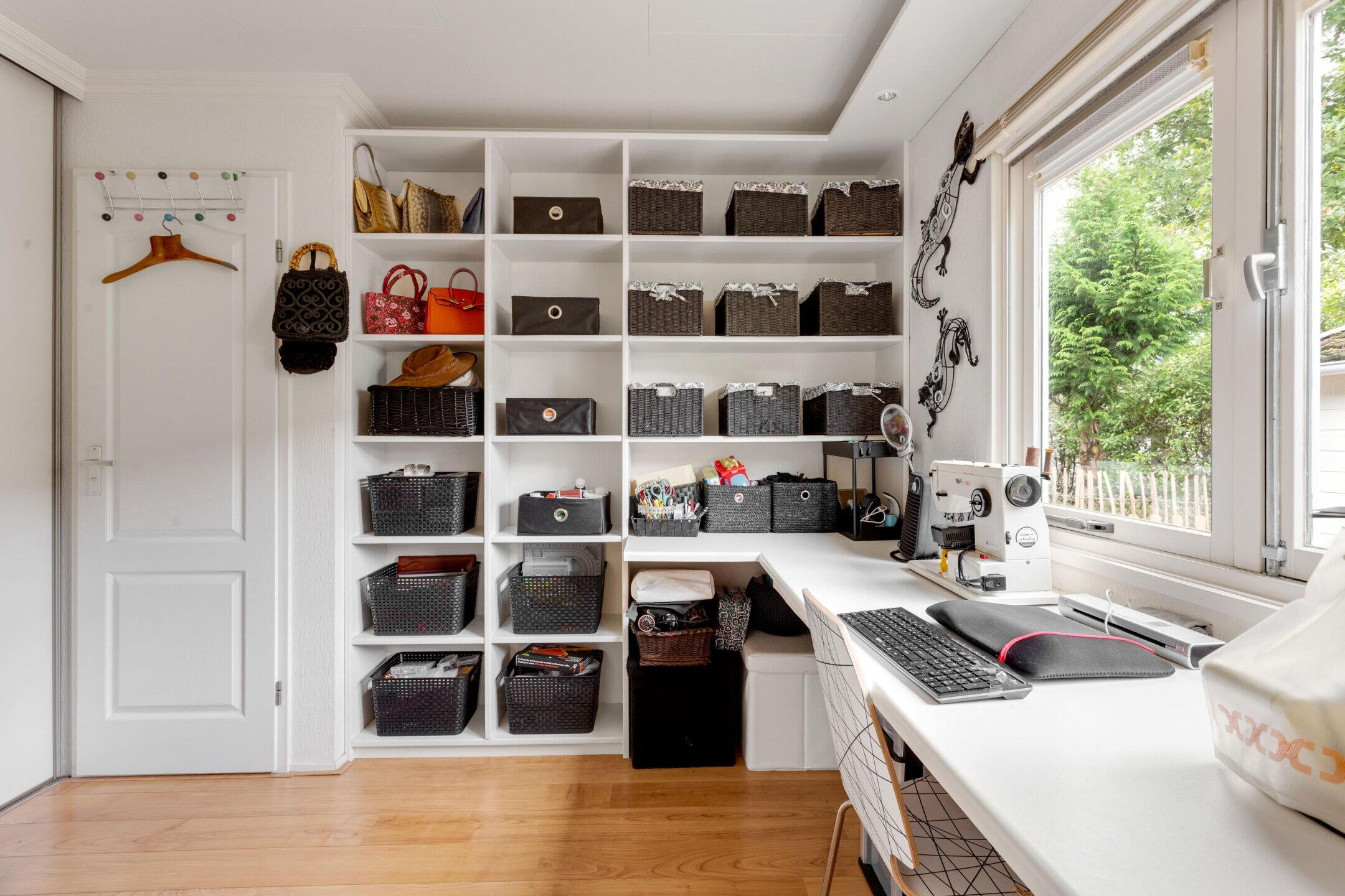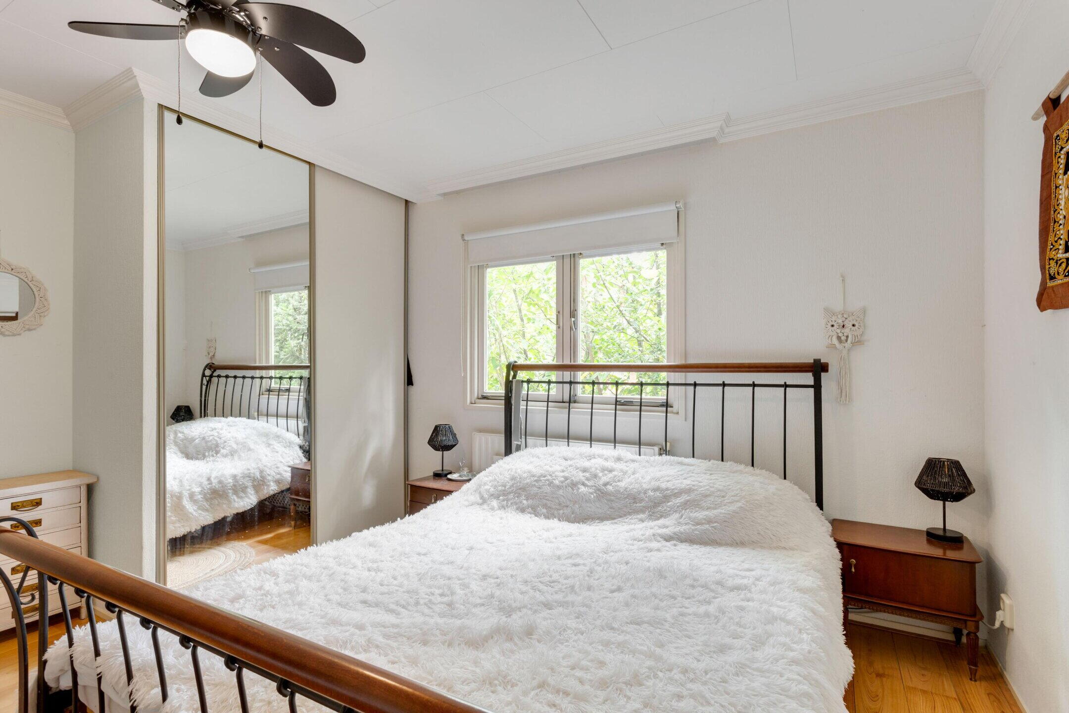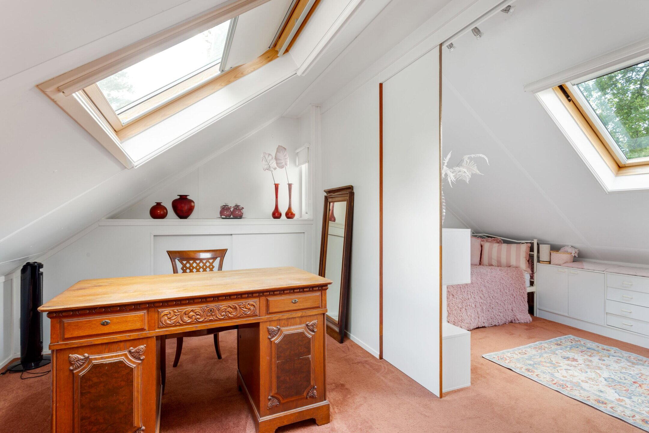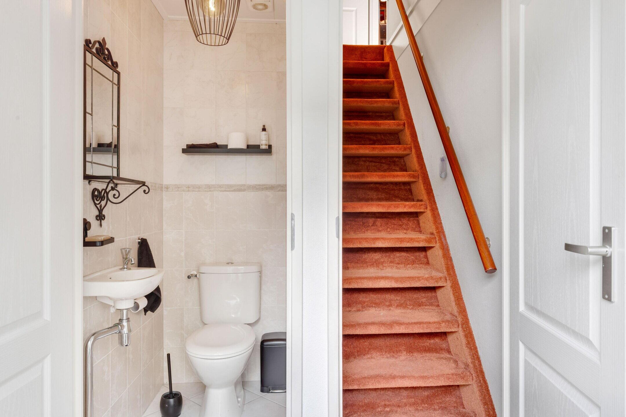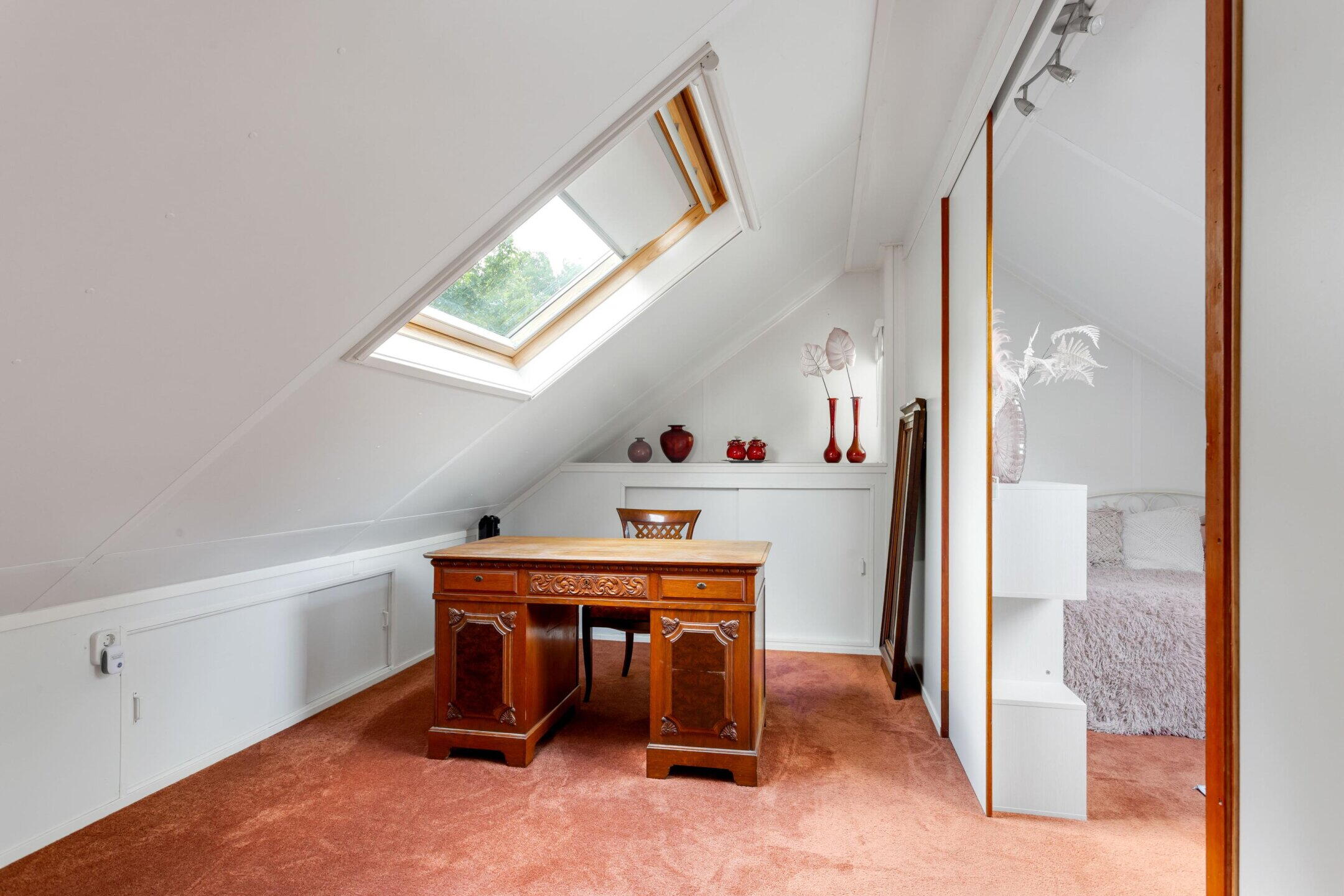 Daarnaast bevinden zich op de begane grond twee slaapkamers, waarvan één uitstekend geschikt is als werk- of hobbykamer. De badkamer beschikt over een douche, wastafel en toilet. Verder zijn er een apart gastentoilet en een praktische wasruimte.