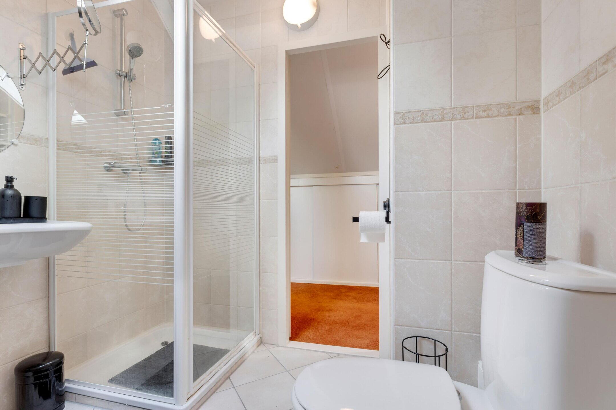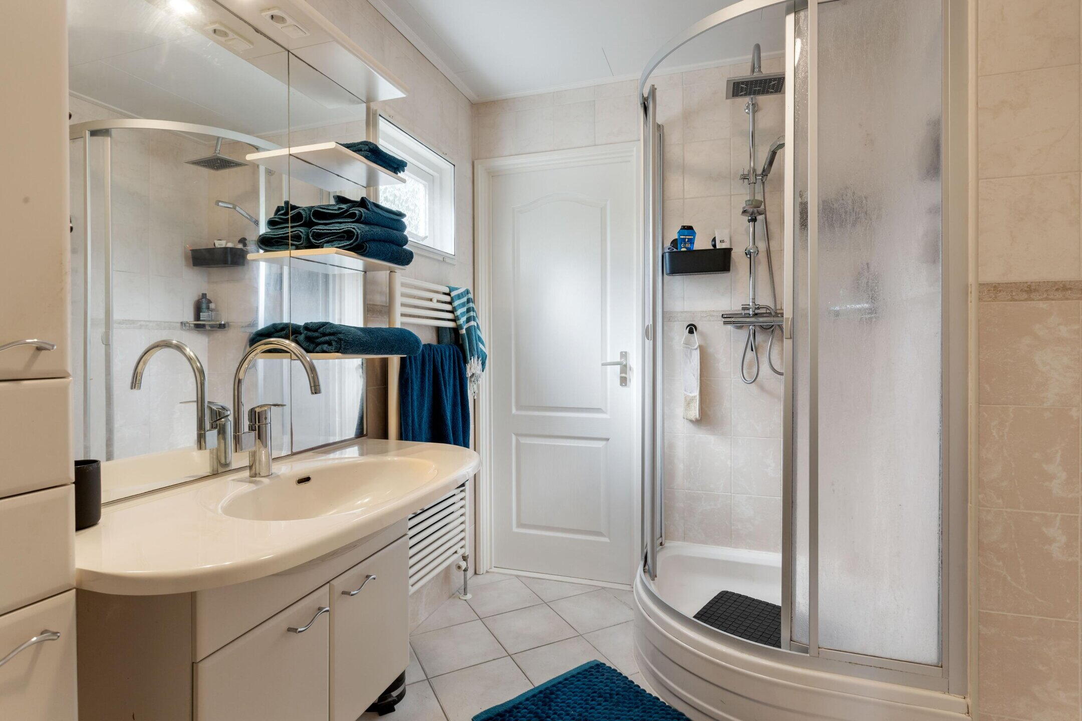 Op de eerste verdieping vind je nog eens twee ruime slaapkamers. De grootste slaapkamer is voorzien van een schuifwand, waarmee eenvoudig een extra (slaap)ruimte te creëren is. Ook hier bevindt zich een tweede badkamer met douche, wastafel en toilet. Dankzij goede isolatie en isolerende beglazing is deze recreatiewoning het hele jaar door comfortabel te gebruiken.